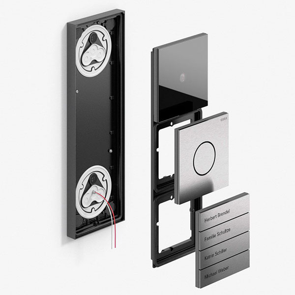 Das Gira System 106 umfasst insgesamt sieben Module, die beliebig miteinander kombiniert werden können. Erhältlich in den Varianten Edelstahl, Aluminium, Weiß lackiert, Bronze (PVD) und Schwarz matt sorgt die Anlage sicherlich für Aufsehen Ihrer Gäste.